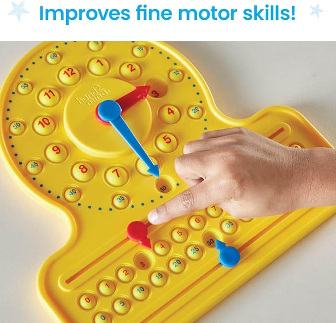 - FINE MOTOR TOYS: Children will make a visual connection from the horizontal number lines to the hours and minutes on the circular analog clock as they move the sliders and pop the corresponding numbers for interactive, hands-on mathematical learning.