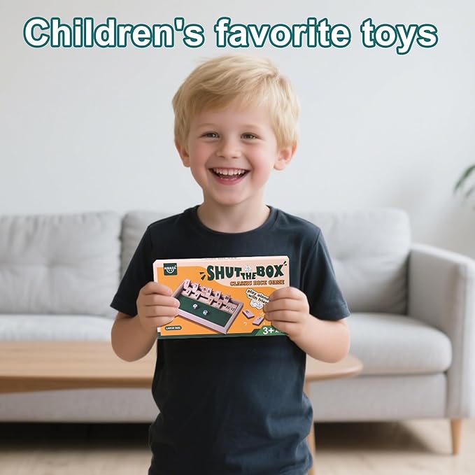 Shut The Box dice Game,Wooden Board Games 2-Person Competitive, Traditional bar, Travel, Family, Fun Math(Large Size)