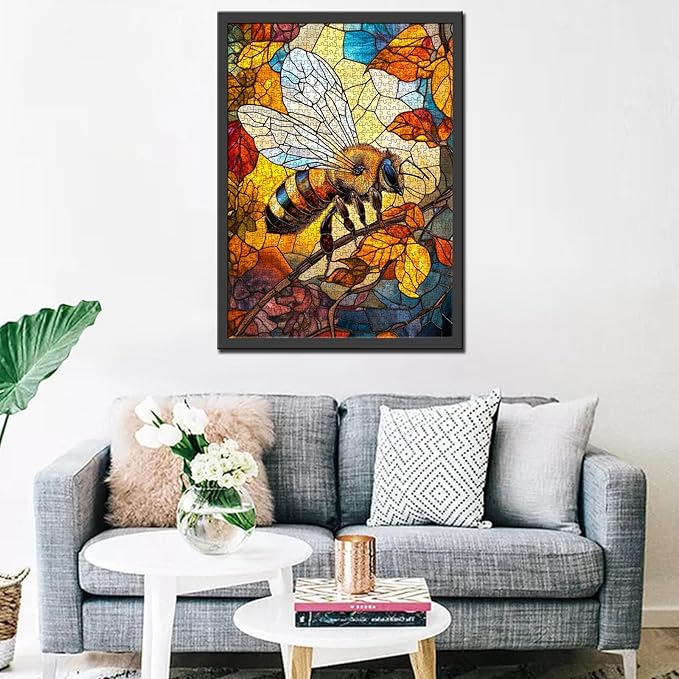 Tucocoo Jigsaw Puzzles 1000 Pieces for Adults-Lovely Bee Glass Style Hardboard Puzzle-Challenging Puzzle Perfect for Game Nights-DIY Home Wall Decor-Art Puzzles Stained Glass Autumn Bee 27" x 20"