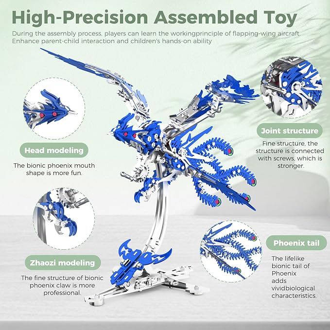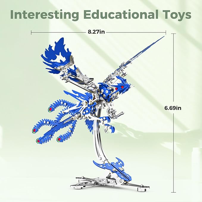 - Mechanic’s Holiday Gift :Laser-cut 316 stainless steel (0.15mm thickness) + UL-certified non-toxic coating.With precision bearings and gear structures, it can dynamically flap its wings!