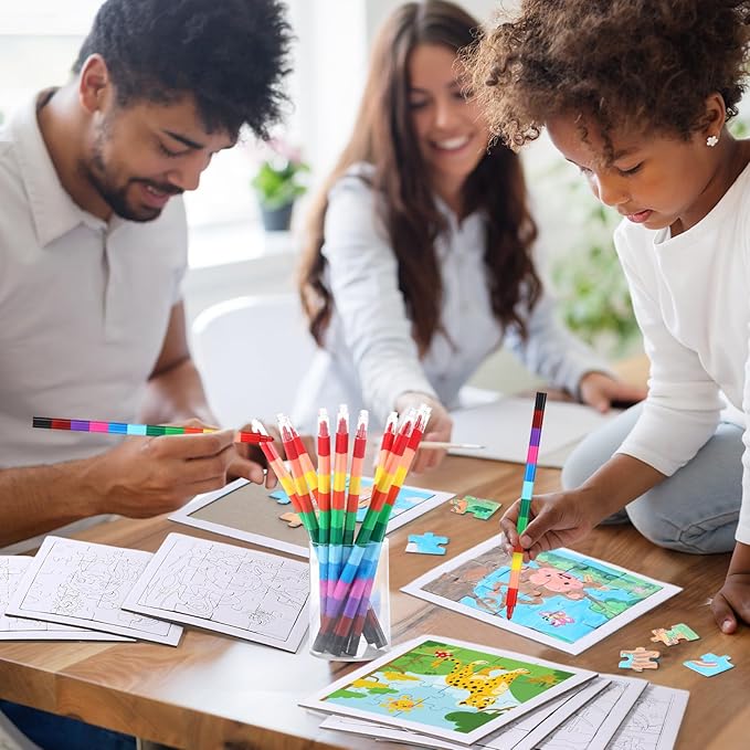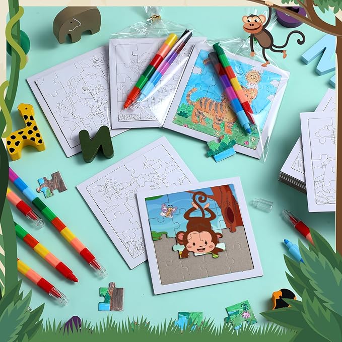 - DIY Crafting Fun: put these scattered puzzle pieces together, then apply the included 12 color crayons to color the blank jungle animal puzzles, you will be very happy to complete this Interesting activity, suitable for endless jungle fun