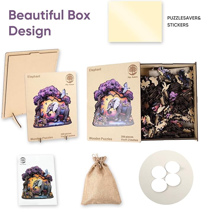 - What You Get -1x Puzzle,-1x Reference picture,-1x Puzzle Saver sticker,-1x Double-sided Tapes,-1x Storage bag & Wooden Box