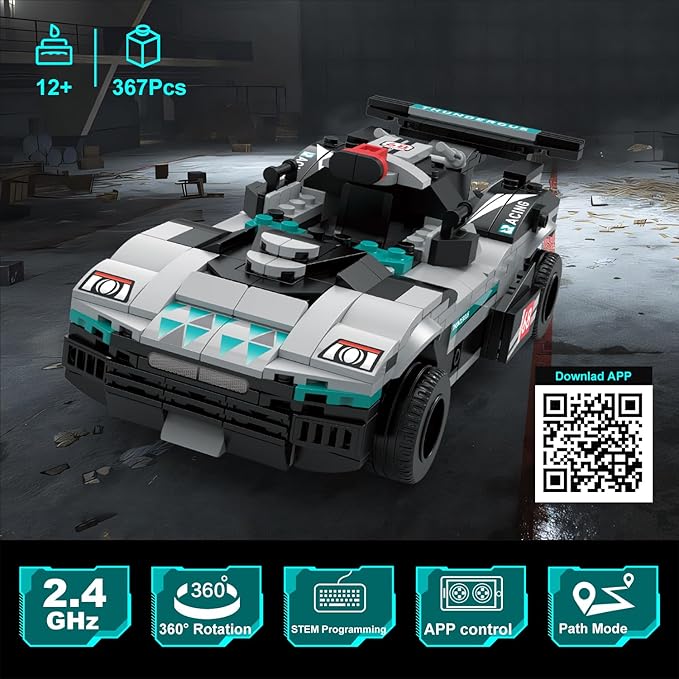 - 【Fun Educational Toys】This creative sports car building set provides them with engineering and physics knowledge and hours of entertainment. The remote control racing car building block toys can help children improve hand-eye coordination, master fine motor skills, stimulate imagination, improve logical thinking, and enjoy the fun of building. The APP programming function can help cultivate children's curiosity and love of mathematics and science