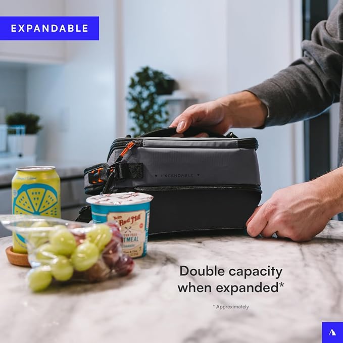 - EXPANDABLE DESIGN: Lunch box expands to nearly double capacity; Conveniently stores lunch, snacks, sandwiches, water bottles, and more