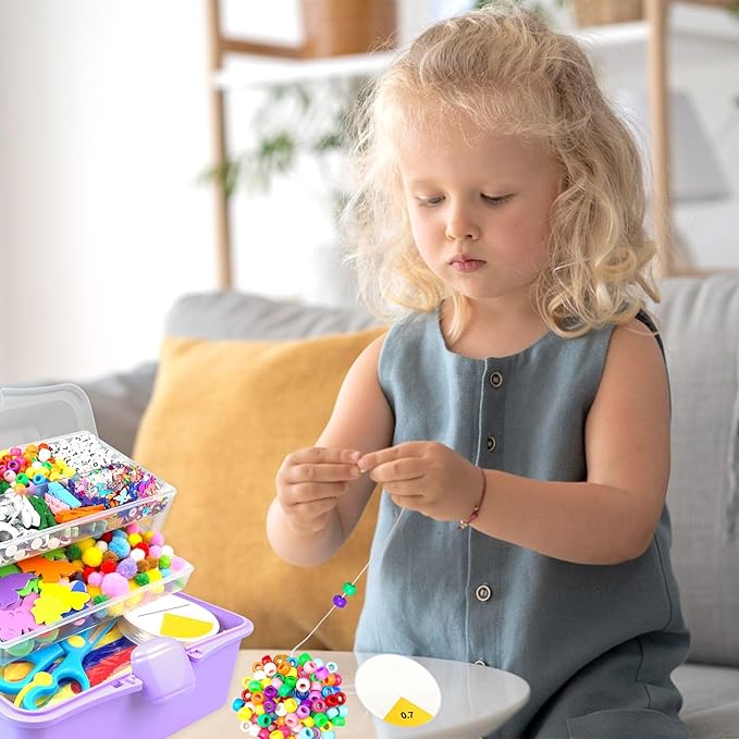 - 3 Layered Plastic Crafting Box: This Art Craft Kit comes with a carrying handles, portable 3 layered craft box. Keeps everything organized, no more hunting for scattered materials