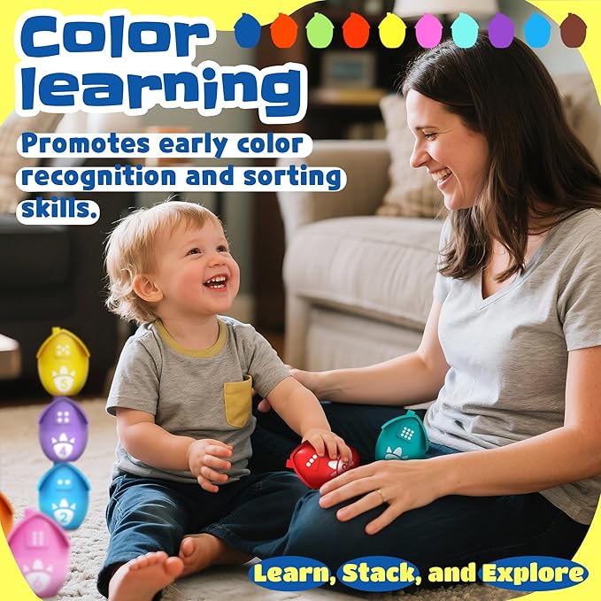 - Montessori-Inspired Learning: With numbered egg house (1-10) and corresponding dot patterns, this set promotes number recognition, counting, stacking, color matching, and sorting skills—all essential early-learning milestones.