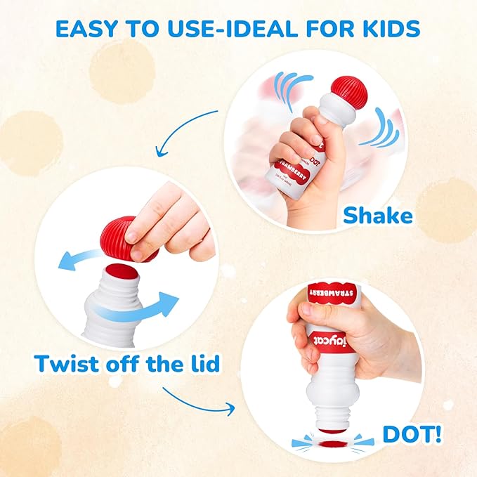 Joycat Vibrant Fruit-Scented Washable Dot Marker for Kid - 6 Color with Carry Handle, scented chart & 123 PDF Free Pages, Non-Toxic & Safe,Bingo Dauber Marker for Toddler 1-3, Art and Craft Kit Supply
