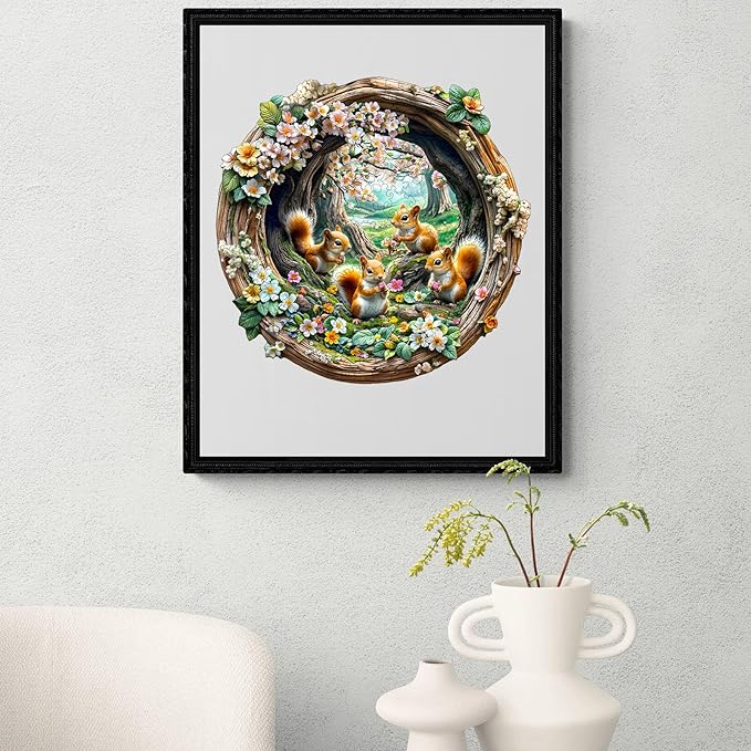 - [Wooden Puzzles for Adults-Squirrel Puzzle] - This 3D visual wooden puzzle shows four cute little squirrels active in the green spring, and the spring flowers, such a scene looks very beautiful and lively! The wooden jigsaw puzzle consists of 200 unique irregular shapes, high difficulty wooden puzzles are very challenging and make puzzle time more fun and enjoyable. Our store puzzles are available in 3-4 sizes to meet the needs of puzzle enthusiasts of all levels.