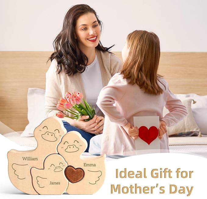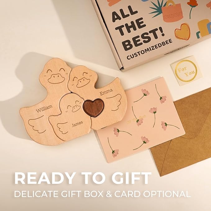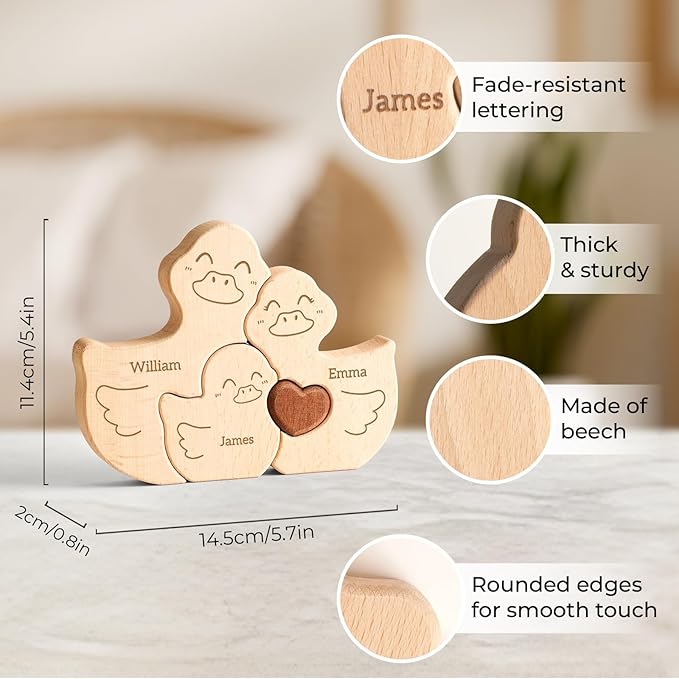 Personalized Wooden Family Puzzle Ducks Toy, Customizable Puzzles with 2-5 Names, Birthday Fathers Day Mothers Day Personalized Gifts for Kids Parents, Unique Home Decor