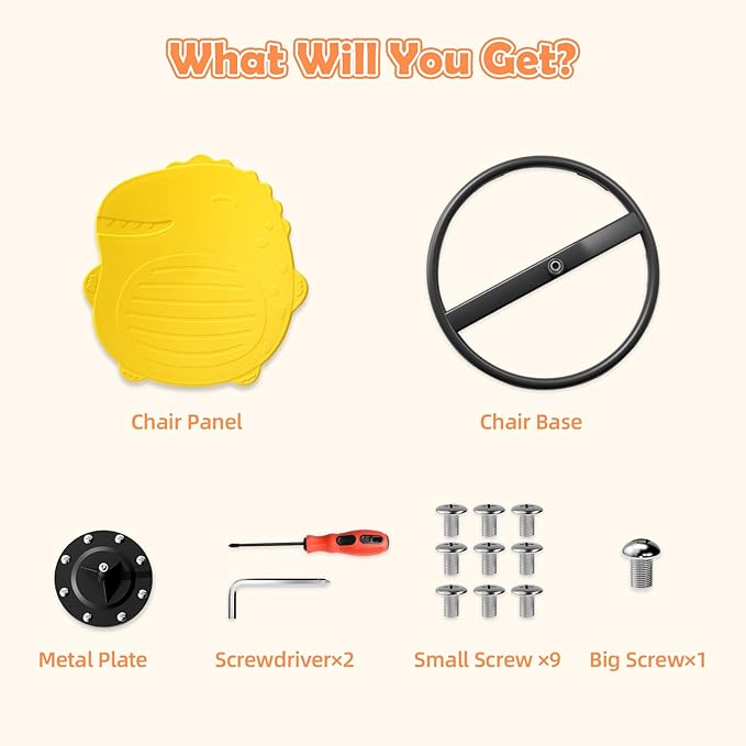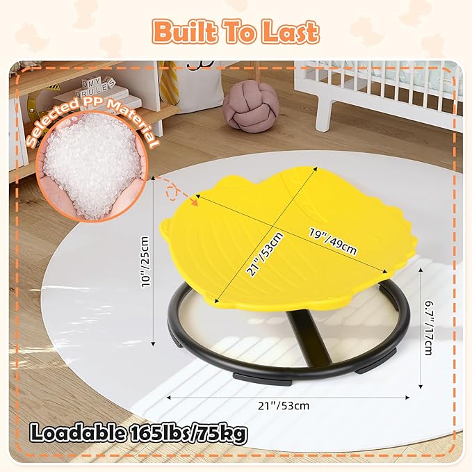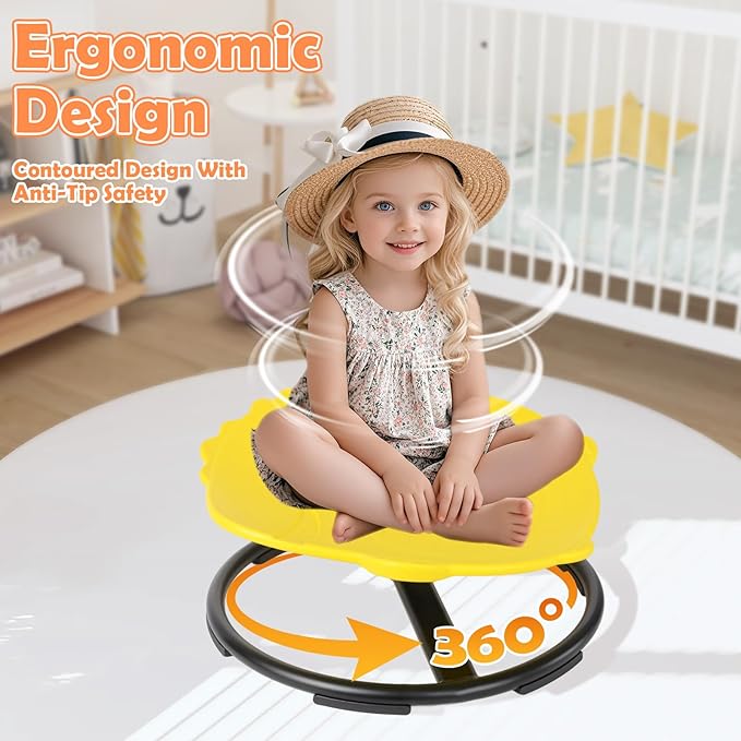 - Ergonomic Design: Featuring a human-centric design, the seat is higher on the sides and curved in the middle, tilted to perfectly fit the hips, providing optimal support and comfort; It evenly distributes weight, reducing pressure and enhancing stability during spinning; The seat's height and size, about 6.7 inches and 10 inches, are tailored for children, preventing falls and ensuring safety