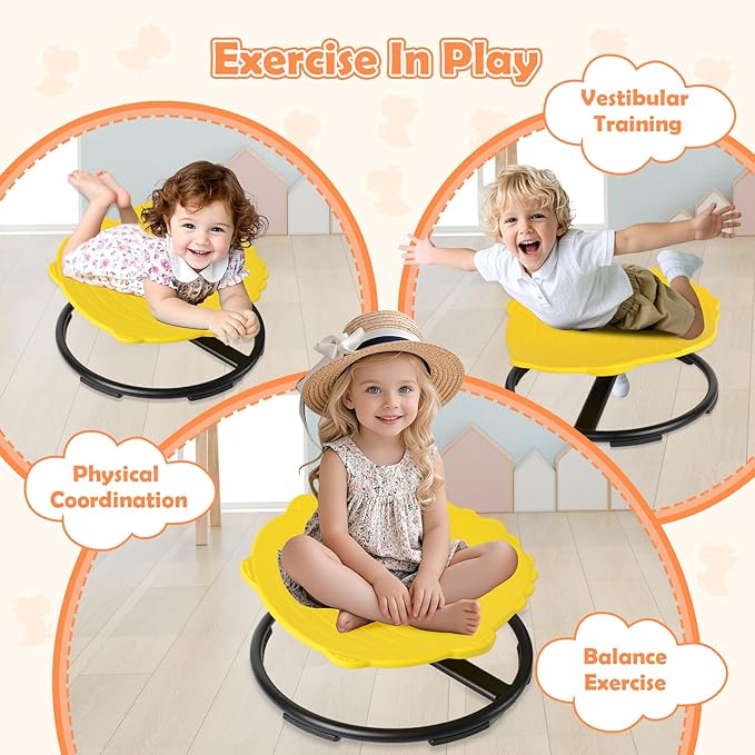 - What Kids Gain: This spinning chair helps stimulate vestibular function, improve balance and body coordination, and alleviates issues like motion sickness and frequent falls; Continuous spinning can aid autistic children in releasing pent-up emotions and gradually opening up, while helping hyperactive children expend excess energy