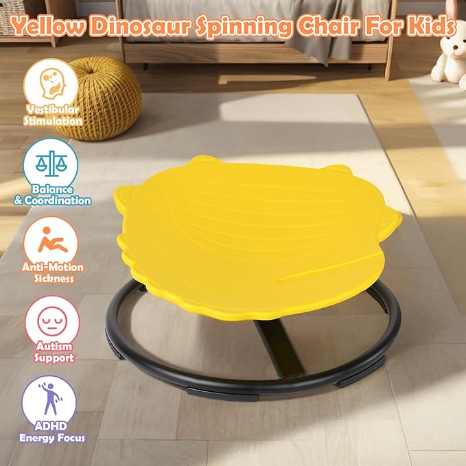 Spinning Chair for Kids, Sensory Integration Training Swivel Chair for Children with Autism & ADHD, for Balance & Body Coordination Training, Yellow Dinosaur