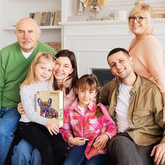 - [Wooden Jigsaw Puzzles for Adults Kids] - This french bulldog-2 shaped jigsaw puzzle is made of high quality natural wood, safe and durable. The wooden puzzle is a colorful puzzle with clear and vibrant images that won't fade over time. Advanced laser cutting technology gives the adult puzzles very smooth edges and a very comfortable feel, protecting your hands from injury.