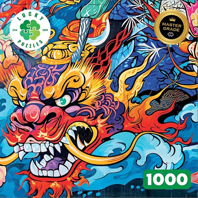 Lucky Puzzles - Kabuki Red Dragon - 1000 Piece Jigsaw Puzzle for Adults | Vibrant Graffiti Art Puzzle | Best New Japanese Dragon Puzzle