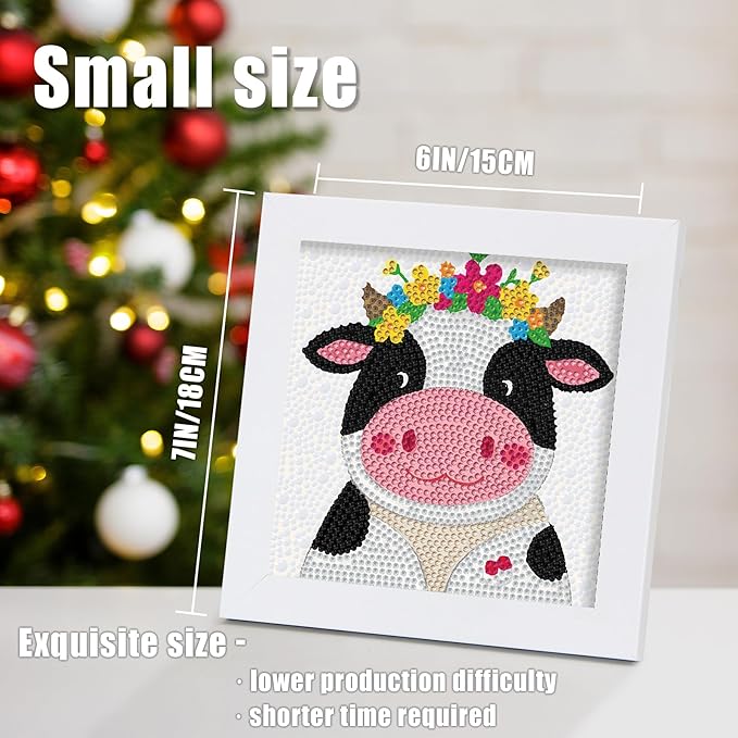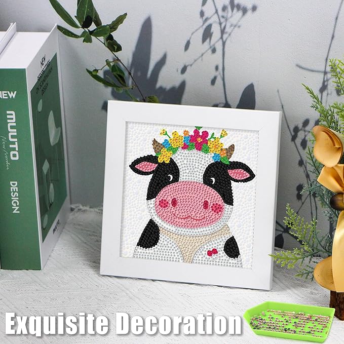 geesfayan Diamond Art Kits for Kids Ages 8-12,6 Inch DIY Gem Art Painting with 7 Inch Frame, Complete Starter Kit for Beginners, Creative Arts & Crafts Gift for Girls & Boys (Cartoon Calf)