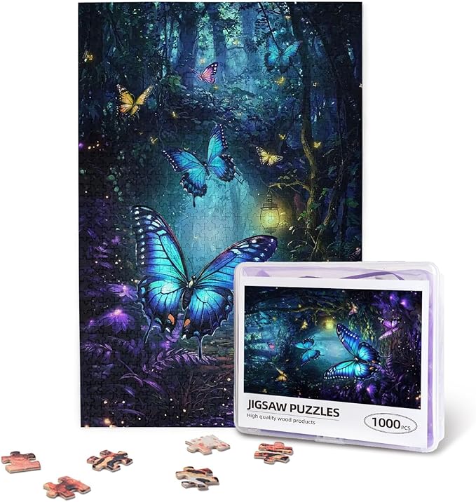 Butterfly Puzzle 1000 Pieces,Fantasy Magical Forest Puzzles 1000 Pieces, Glow Art Jigsaw Puzzles Butterflys,Fantasy Colorful Butterfly Insect Puzzle Puzzles As Family Game