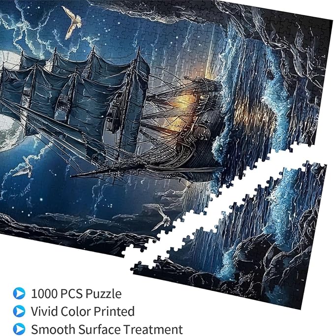 Sailboat Jigsaw Puzzles 1000 Pieces,Moon Sailboat Jigsaw Puzzles Moonlit Voyage 1000 Piece,Ocean Sea Sailing Ship Puzzles,Fantasy Puzzles for Friends Family Activity Game Nights Gifts
