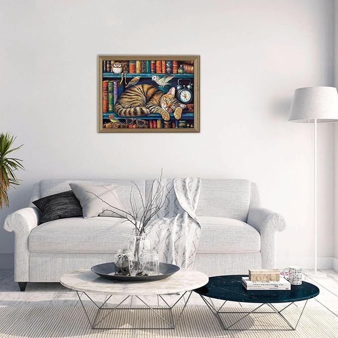 Cat Sleeping On The Bookshelf 500 Piece Puzzle for Adults, Cats Library Jigsaw Puzzle, Funny Kitten Bookshelf Puzzles 500 Piece, Challenging Puzzles for Friends Family Activity Game Nights