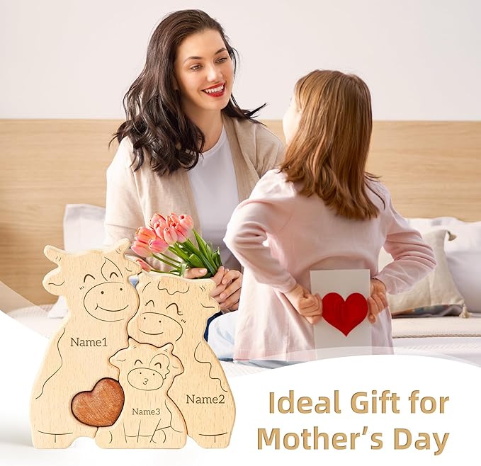 Wooden Cows Family Puzzle, Personalized Puzzles with 2–5 Names, Fathers Day Birthday Personalized Gifts for Mom Dad Kids Teen Boys Girls Grandma, Toddler Men Thanksgiving Gifts