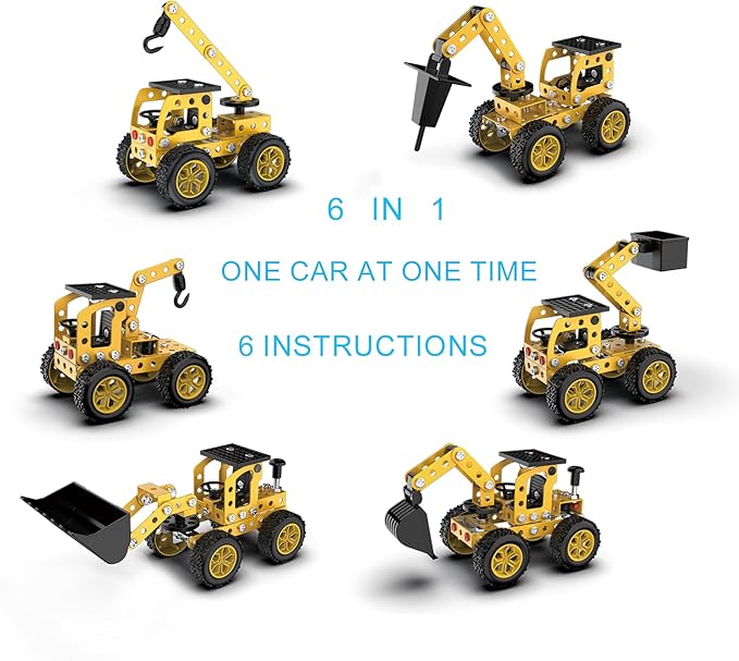 - 【Inspires Creativity and Hands-On Skills】:With 6 unique building set options, this construction vehicle building set encourages creativity and problem-solving. Kids can enhance logical thinking, focus, and fine motor skills through assembling and reassembling. A great screen-free activity for kids who love cars and toys.