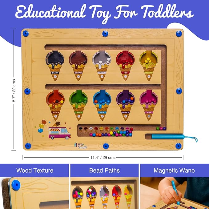 - MAGNETIC MAZE FUN: Includes a tethered magnet wand to guide beads through the maze; encourages focus, patience, and problem-solving in kids ages 2–5