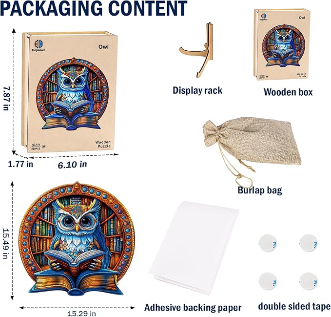 - CHALLENGING & EDUCATIONAL WOODEN PUZZLE: Take delight in the intricate Book Owl wooden puzzle, designed for both adults and kids aged 12+. Measuring 11.49" x 11.29" and featuring 300 unique pieces, it offers a thrilling challenge that sharpens your mind and sparks creativity