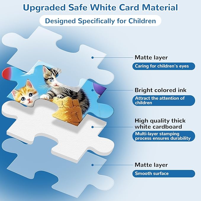 - Durable&Safe Design:Constructed from thick and high-quality white cardboard, our cat jigsaw puzzles pieces are resistant to bending and tearing. The appropriately sized kids puzzle pieces are easy for little hands to grasp. And we use child-safe, rich color inks to ensure vibrant colors and clear images, making it a safe choice for your child.