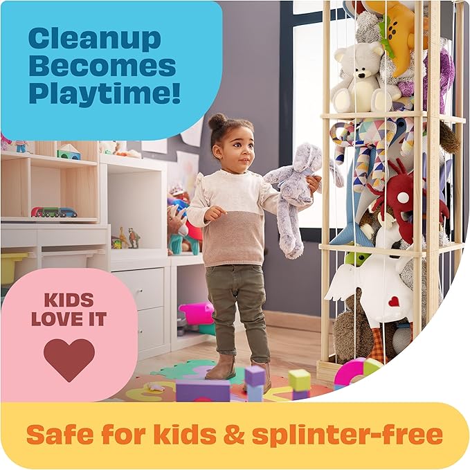 - Montessori-Inspired Organization. Encourage independence with our child-friendly stuffed toy storage zoo made for kids to easily store and retrieve toys themselves. Stuffed animal holders turn cleanups into a fun game of being a “zookeeper”