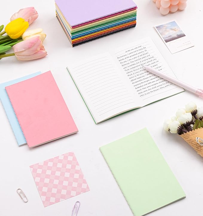 - 【High-Quality Construction】Crafted with premium materials, our mini journal notebooks feature thick, acid-free paper that prevents ink bleed-through, ensuring a smooth and enjoyable writing experience, and featuring 7mm-spacing college ruled line, and the lines make it easier to control how much you write. The sturdy stitched binding keeps the pages securely in place, while the soft cover provides a comfortable grip.