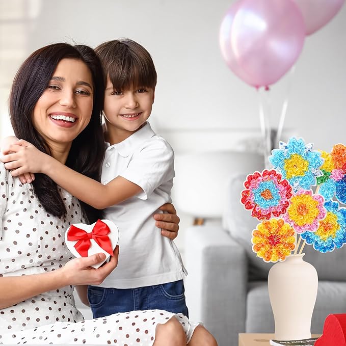 - Easy to Use :Our flower arts and crafts kits are a great choice. Kids will make their own flower designs using fabric squares that are poked into foam to create petals, then mounted on wooden stems. Once complete, these DIY flowers can be arranged into a beautiful bouquet to celebrate Mother's Day for mom.Expressing love and appreciation for mom.