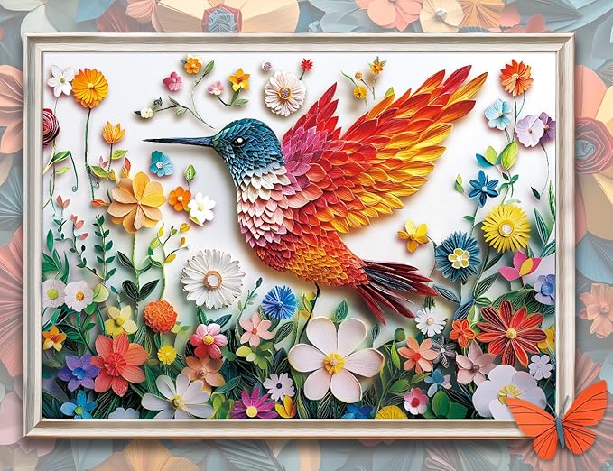 - Unique Design: A piece of paper-cut art, this colorful puzzle showcases vibrant flowers and hummingbirds, inviting you to step into nature