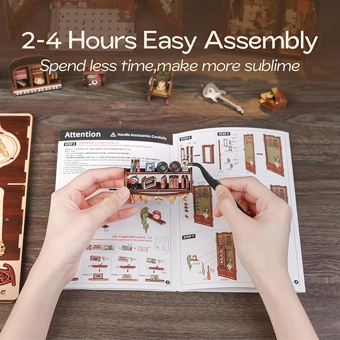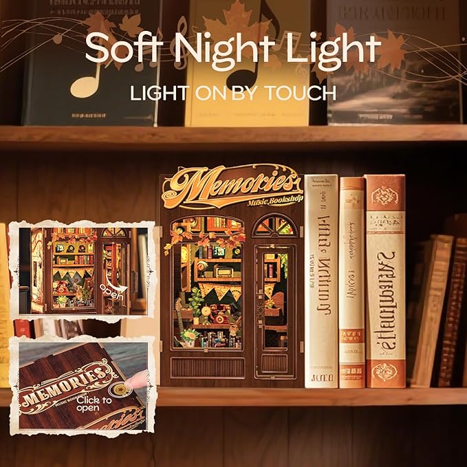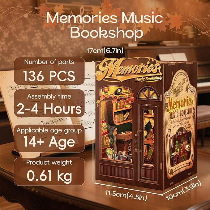 - 【High-Quality Materials】Crafted from high-quality wood, this memories music bookshop booknook kit is both durable and elegant. Each piece is laser-cut and pre-colored, so no painting is required. A step-by-step instruction guide is included, making assembly easy and enjoyable for everyone!