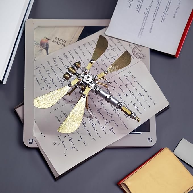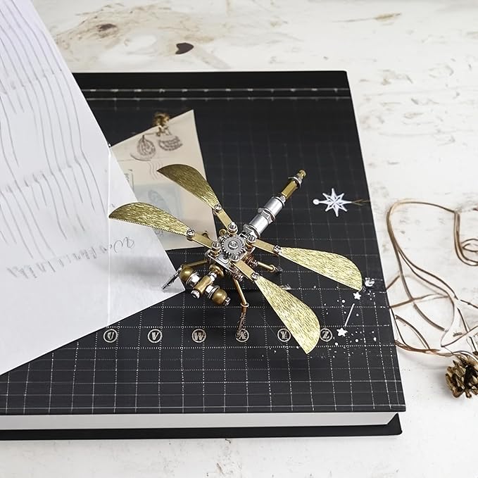 Steampunk Metal Insect Bug Sculpture Clockwork 3D Creative Mechanical Insect Kit Puzzle Mechanical Insects Dragonfly Model Engineering Puzzle for Christmas Ornaments(Ujinensis Dragonfly)