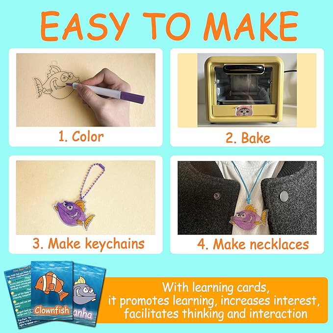 - 6. Perfect Gift for Young Crafters: Packed in a complete set, this shrink art kit makes an ideal gift for birthdays, holidays, or special occasions. It's suitable for encourages hands-on learning and creativity. The inclusion of learning cards and instructions ensures a rewarding experience, making it a thoughtful and educational present for young artists.
