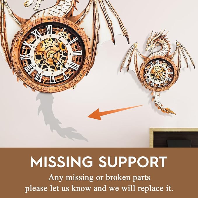 - 【3D Puzzles for Adults】Build a stunning mechanical clock with this intricately designed DIY clock kit, featuring a three-dimensional dragon motif and Roman numeral dial. Perfect for hobbyists seeking challenging 3D puzzles that combine artistry with engineering.