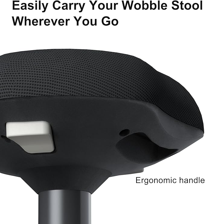 - EASY TO INSTALL AND PORTABLE – Assemble this sit stand stool in just a few steps without any tools. The ergonomic handle makes the wobble stool incredibly easy to move and use anywhere. Its stylish and elegant design seamlessly blends into any modern office setting