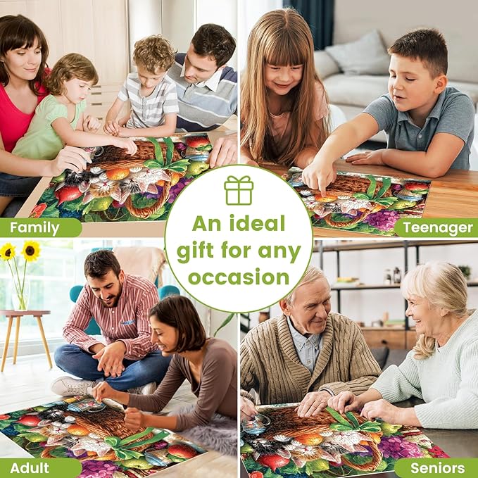 - [Fruit Basket Cat Puzzle]: This delightful 300 piece puzzles for adults features an adorable cat and Fruit theme that will brighten your puzzling experience.This puzzle features four Sleepy cat napping in a wicker basket decorated with a green ribbon, perfect for your jigsaw puzzle collection.