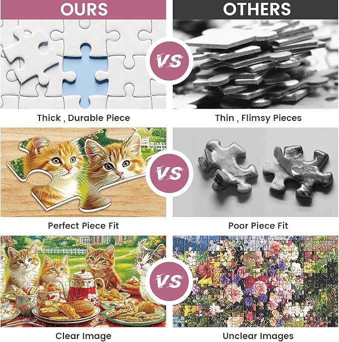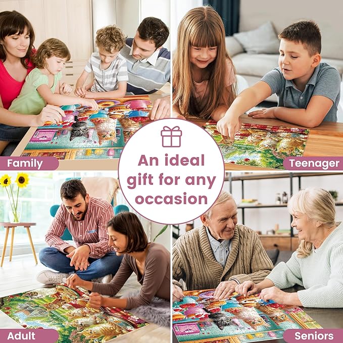 - [Cat puzzle set]: This kids' jigsaw puzzle set embraces warmth and nature with charming, colorful designs. It features playful cats, vibrant gardens and cozy scenes. Each jigsaw puzzle shows a harmonious and beautiful scene, perfect for children's play and creativity, suitable for children to enjoy creative fun.