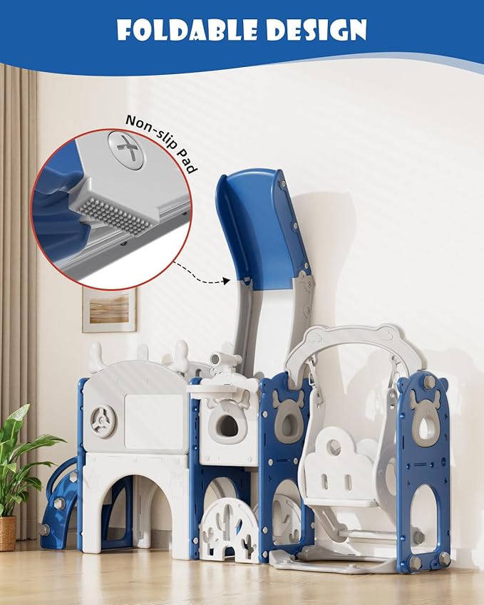 YUFU 13 in 1 Toddler Slide and Swing Set, Kids Slide for Toddlers Age 1-3, Toddler Playset with Golf Set, Basketball Hoop and Drawing Board, Outdoor Indoor Playground (Blue)
