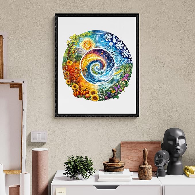 KAAYEE Wooden Puzzles for Adults, 3D Visual Effect Seasons of Life Wooden Jigsaw Puzzle Unique Shape Wood Puzzle Adult, 3D Effect Flat Puzzle Birthday Family Game (M-11.4 * 11.4 in-200pcs)