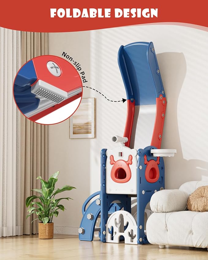 XJD 7 in 1 Toddler Slide, Kids Indoor Slide for Toddlers 12-36 Months, New Upgrade with Golf, Basketball Hoop for Indoor Outdoor Playset,Toddler Playground (Blue Red)