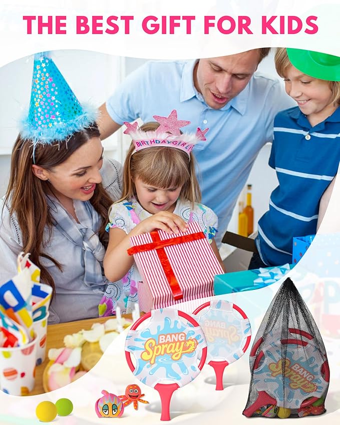 - Great Gift for Outdoor Fun – A Fantastic Choice for Water Games A fantastic gift choice for anyone who enjoys water games and active outdoor play. Perfect for summer vacations, pool parties, and beach outings. With an age range starting at 3 years old, it’s an ideal present for kids, teens, and adults who love interactive beach and pool activities. This set is a must-have for those who enjoy swimming pool and beach paddle sets and want to enjoy pool paddle ball outdoors.