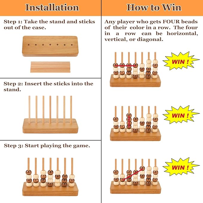 - Perfect Gift: The four in a row game set is perfect present for yourself,family,friends. Suitable for most ages but not under 3 given the choking hazard of the beads.