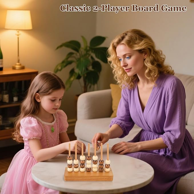 - Game Set Components: The game set comes 1 wood game board, 42 wooden beads, 2 velvet drawstring bags for beads,1 carrying case for carrying. This tabletop game is the perfect 2 player game,which is full of competitive challenges and adds infinite fun.