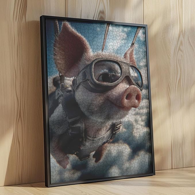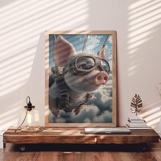Cute Piglet Wearing Goggles 1000 Pieces Adult Jigsaw Puzzle,Animal Skydiving Fun Brain Puzzle Lovers Vibrant Illustrations and Quality Pieces Challenging and Relaxing Great Gift Idea
