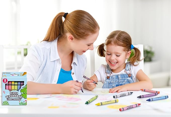 Super Washable Jumbo Crayons Bulk, 4 Pack Crayons with 8 Bright Colors, Non-Toxic Easy-Grip for Toddlers 1-3 & Kids Ages 4-8, Safe Art Supplies for Coloring Books & School Projects