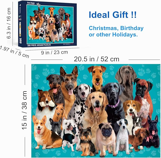 500 Piece Puzzles for Adults Pet Dogs 20.5 x 15 Inch 500 Piece Jigsaw Puzzles for Kids Adults Puzzles 500 Pieces for Adults Holiday Educational Challenge Toy