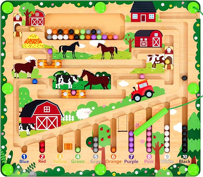 - Magnetic Color and Number Maze: This magnetic toddler game features 55 magnetic beads in 10 distinct colors,perfect for kids aged 3 and up,children can joyfully engage in counting and matching,great for improving fine motor skills and learning colors and numbers.