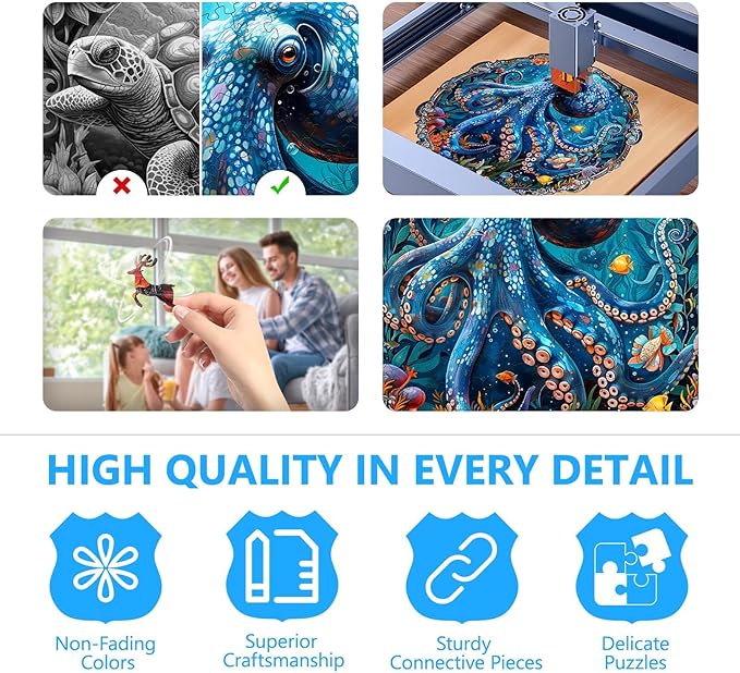 - ๐ชตTop Quality - This wooden puzzle is made of environmentally friendly materials, which are odorless and very safe. Wood puzzles are printed with UV technology, the colors are bright and long-lasting. Each piece of the puzzle is precisely laser cut and tightly interlocked. It has a smooth surface and neat edges.