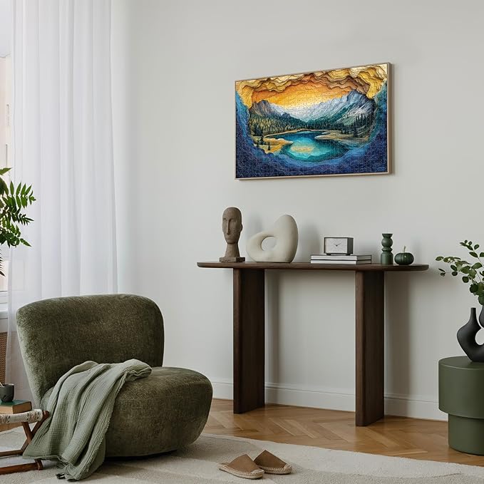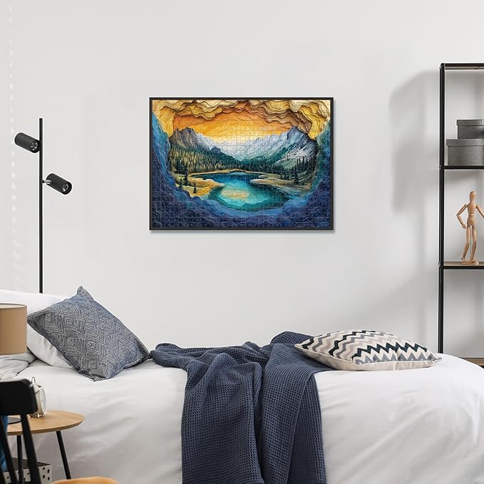 - Breathtaking Nature Puzzle Challenge: Dive into a scenic adventure with this 1000-piece puzzle featuring a Yellowstone lake-inspired landscape. Towering peaks, lush forests, and a glowing sky make for a captivating challenge and a rewarding finished piece.